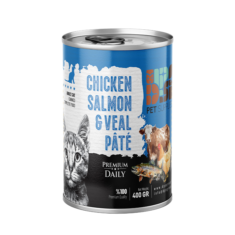 درباره دی پی اس کنسرو گوشت مرغ سالمون گوساله گربه بالغ 400 گ