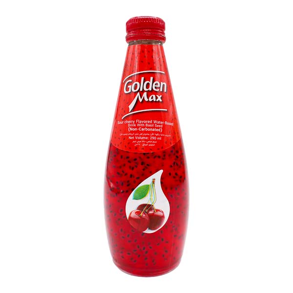 گلدن مکس نوشیدنی تخم شربتی آلبالو شیشه 290 میل