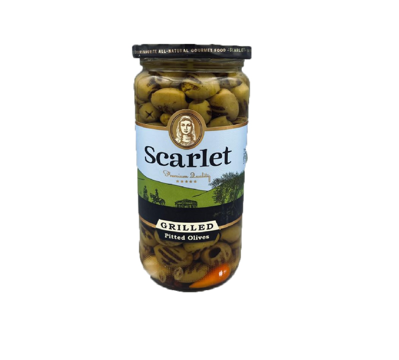 اسکارلت زیتون سبز بدون هسته کبابی 500 گرم شیشه