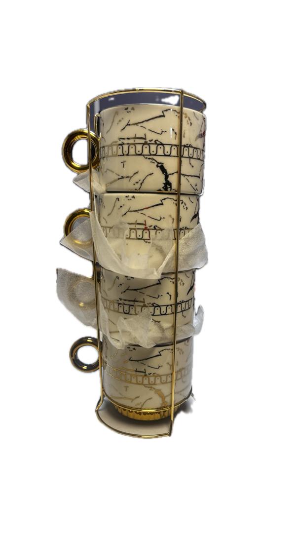 فشیون فنجان طلایی سفید 4 عددی استند دار